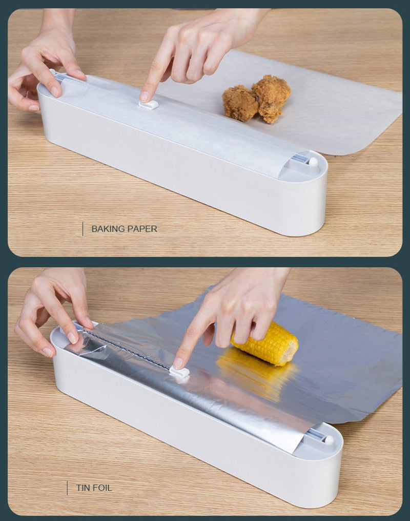 A: Absolutely. Wrapsy™ built-in cutter handles cling film, aluminum foil, and baking paper smoothly. One tool replaces the clutter of multiple messy boxes.